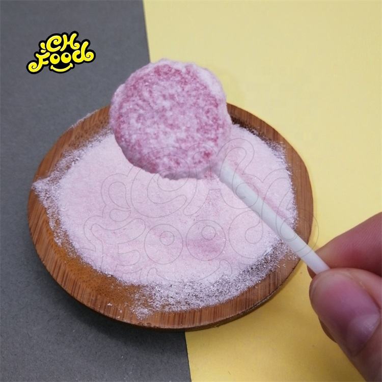 | Product name | Strawberry Flavor Mini Flat Round Lollipop with Sour Powder Candy |